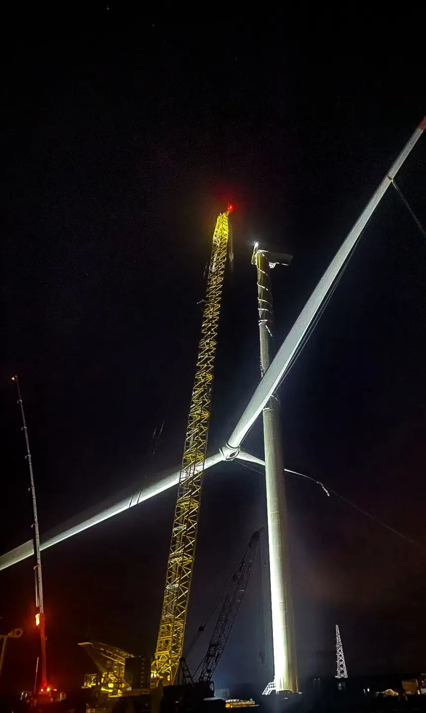 吊装历程中,,,,,塔筒、机舱与叶轮精准对接,,,,,一气呵成,,,,,展现了其强盛的作业效率和卓越的施工能力。。。。。值得一提的是,,,,,由于施工现场天气优异,,,,,整个叶轮吊装历程仅用30分钟,,,,,这样的高效作业不但归功于操机手精湛的手艺,,,,,更得益于XLC18000M的多项智能化设置。。。。。