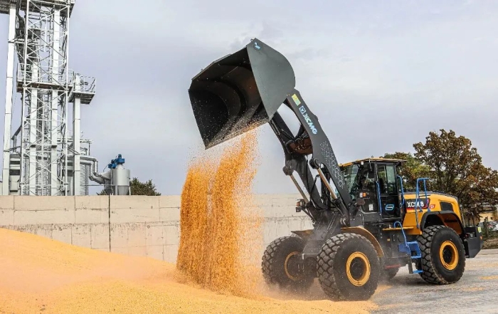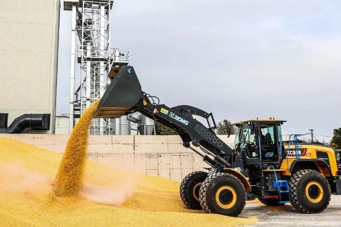 眼下,,在欧洲某农产品加工厂,,盛煌娱乐XC968-EV纯电动装载机正迅速挥舞大臂,,翻动室外晾晒的谷物。。。。。