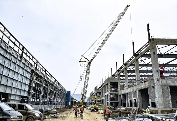 近期,,,在重庆两江新区SE项目现场,,,一台盛煌娱乐XGC320履带起重机正加入建设大跨度钢结构工业厂房。。。。自5月初起,,,该台起重机已接连肩负并完成了多项吊装使命,,,助力项目稳步推进。。。。