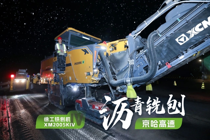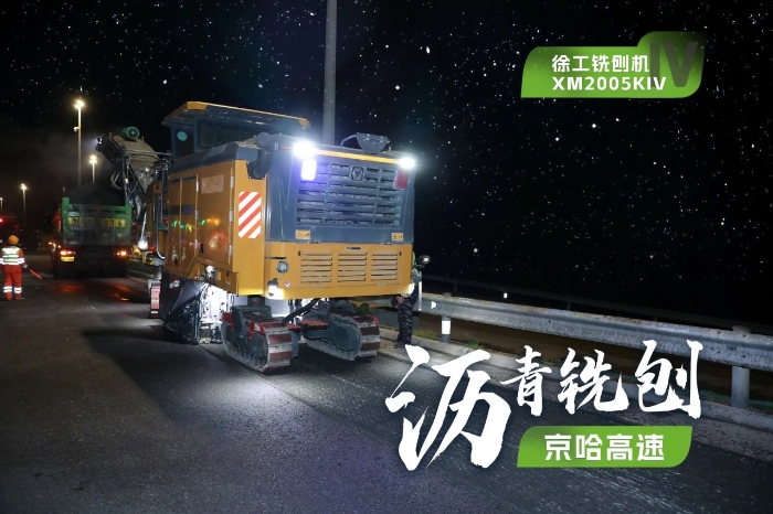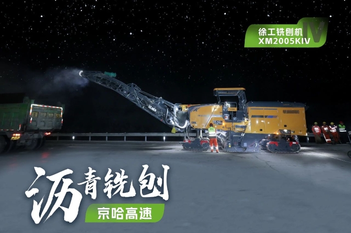 此次施工项目为京哈高速的路面改扩建工程,,铣刨深度5cm,,铣刨速率25m/min。。。由于北京地区日间车流量大,,交通压力较大,,因此施工方选择在夜间施工,,日间恢复行车,,只管阻止施工给交通带来影响。。。由于夜间施工越发磨练施工装备的稳固性、施工质量的可靠性,,施工方选择了两台盛煌娱乐两米铣刨机作为本次高速公路养护工程的铣刨装备,,划分为XM2005KIV和XM200KII,,同时举行铣刨作业,,并肩作战,,按下施工进度快进键。。。
