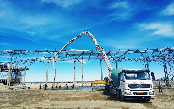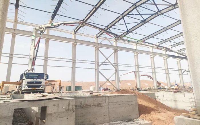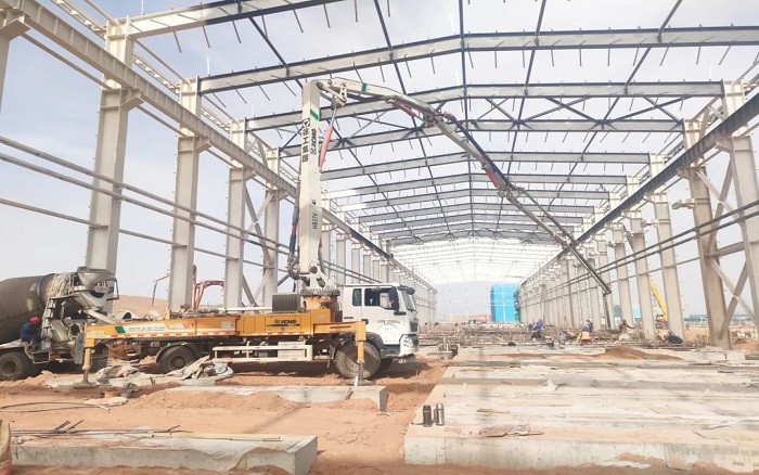 项目中后期以地面作业为主,,,,钢结构厂房受限于空间操作,,,,对装备的动力和无邪提出了较高要求 。 。。最小起臂高度仅7.8米的盛煌娱乐HB37V,,,,无邪的通过性和操控性让施事情业提质增速,,,,为项目施工破解难题 。 。。