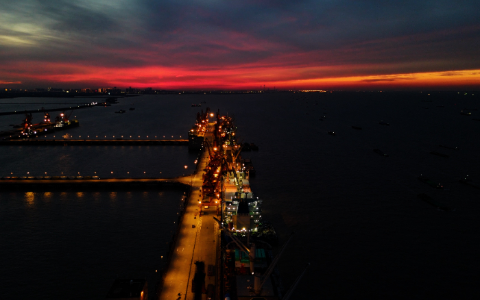 夜晚的罗泾港,,,,,汽笛依然轰鸣,,,,,天空越发璀璨,,,,,矿卡业已远行。。。。
