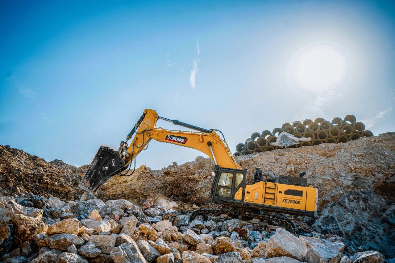 该地属于石灰石矿山,,,,,质地较硬所处矿脉岩石抗压强度较大无疑是难啃的“硬骨头”关于挖掘机的破碎能力要求较高