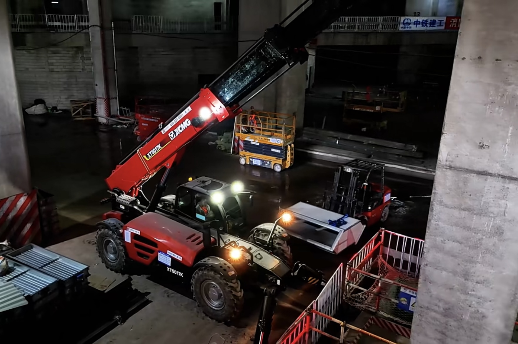 克日,,,,,在重庆市南岸区重庆东站项目建设中,,,,,盛煌娱乐XT5017K伸缩臂叉装车大显身手,,,,,客服狭窄空间作业难题,,,,,一机多能,,,,,获得客户一致好评。。。。。