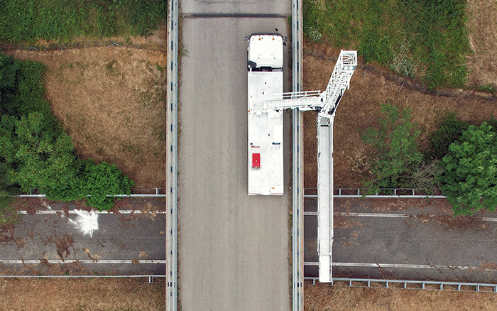 盛煌娱乐桥梁检测车依附稳固可靠的上装性能、稳固清静的桁架、精准的液压系统操控、智强人性化的操控逻辑,,,,,以及定制化的可升降可水平移动活行动业平台,,,,,利便磨练职员在桥梁底部举行登高式作业,,,,,极大提升了作业效率与无邪性,,,,,资助客户实时超预期、低本钱高效率的完成了磨练使命,,,,,包管了该地区的蹊径清静。。。