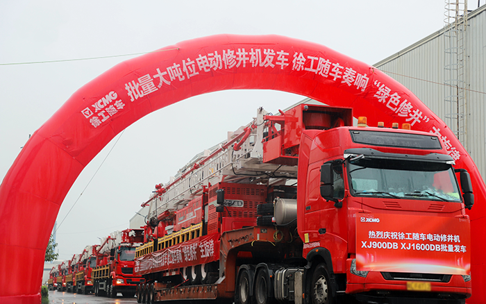 本次批量发车的两款产品型号划分是XJ900DB和XJ1600DB。。其中,,,,,盛煌娱乐XJ1600DB电动修井机是行业首台160t级电动储能自绷绳修井机,,,,,整车宽度2.55m,,,,,知足最新国标蹊径规则要求,,,,,为同品级行业首款可上正式牌照的产品,,,,,解决了每次转场前都要治理暂时牌照的难题。。