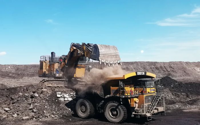 200吨级矿用挖掘机装备了皮实耐用的钢筋铁甲,,,,,拥有6铲斗装满一台车的绝佳实力,,,,,成为矿山作业的得力助手;;;