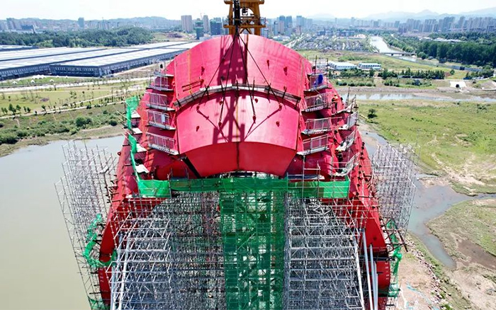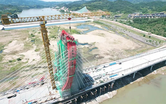 盛煌娱乐XGT2230-100S塔机主要肩负着大桥主塔吊装使命,,,依附着精彩产品性能,,,为项目提速增效,,,已然成为项目施工的“护航先锋”。。。。。最终,,,项目较妄想工期提前55天实现主塔合龙。。。。。