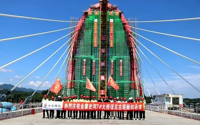 金寨史河7#大桥全长629米,,,接纳“红色摇篮”造型,,,是安徽省金寨县生长红色文旅工业的主要新地标修建,,,也是安徽省境内造型最雅观最奇异,,,集人文历史、防汛抗洪、交通运输功效为一体的桥梁工程。。。。。